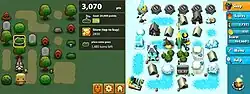 Both games have similar gameplay. They are both match-three games on a six-by-six grid. When three identical objects are placed next to each other on the grid, they transform into another object, such as combining shrubs into a tree. As the player tries to combine objects and increase their score, the game creates challenges by placing new objects that clutter the game grid.[4] Both games also have a marketplace with identical prices for analogous items, and similar language in their dialog boxes. However, there are cosmetic differences, particularly the titular Yeti playing the same role as Triple Town's bear, and Yeti Town being presented in 3D rather than the 2D presentation of Triple Town.[6]