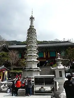 Ssanggyesa (Korean: 쌍계사) is a head temple of the Jogye Order of Korean Buddhism. It is located on the southern slopes of Jirisan, southwest of sacred Samshin-bong Peak in the Hwagye-dong Valley of Hwagae-myeon, Hadong County, in the province of Gyeongsangnam-do, South Korea.