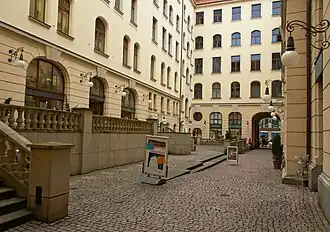 - ^ a b c d Hocquél, Wolfgang (2007). Die Leipziger Passagen. Architektur von europäischem Rang [The Leipzig passages and courtyards. Architecture of European standing] (in German) (3 ed.). Beucha: Sax-Verlag. pp. 51–55. ISBN 978-3-930076-90-1.