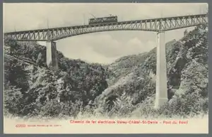 The St-Légier–Châtel-St-Denis railway line was a 1,000 mm (3 ft 3+3⁄8 in) metre gauge railway line in the cantons of Vaud and Fribourg, Switzerland. It ran 7.4 kilometres (4.6 mi) from a junction with the Vevey–Les Pléiades railway line at St-Légier-Gare to a junction with the Palézieux–Bulle–Montbovon railway line at Châtel-St-Denis. The line was owned and operated by the Chemins de fer électriques Veveysans (CEV). It opened in 1904 and was closed in 1969.