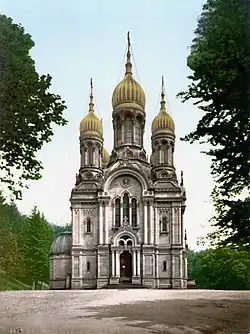 The Russian Orthodox Church of Saint Elizabeth in Wiesbaden (German: Russisch-Orthodoxe Kirche der heiligen Elisabeth in Wiesbaden; common local name Griechische Kapelle, "Greek chapel"; Russian: Русский православный храм Св. Праведной Елиcаветы в Висбадене) is the only Russian Orthodox church in Wiesbaden, Germany, and is located on Neroberg.[1] Besides the Russian church there is a parsonage and a Russian cemetery, which is the largest in Europe (outside Russia itself). St. Elizabeth's Church and its parishioners belong to the Diocese of Germany in the Russian Orthodox Church Outside Russia.