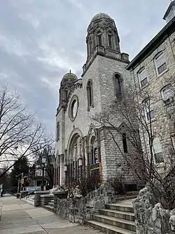 St. Francis de Sales Roman Catholic Church, founded in 1890, is a Catholic church at 4625 Springfield Avenue in Philadelphia, Pennsylvania, part of the Roman Catholic Archdiocese of Philadelphia. Its cornerstone laid in 1907,[1] the Guastavino tiled dome of the de Sales parish has been an icon in its neighborhood. The de Sales parish was designed by Philadelphia architect Henry D. Dagit,[2] built in the Byzantine Revival style and incorporates a Guastavino tile dome modeled on that of Istanbul's Hagia Sophia and elements of the Arts and Crafts movement which was at its peak when the church was built.[3]