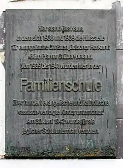Plaque for the Grüber Bureau and its family school, opened 1939 for pupils expelled from state schools due to their Jewish descent
