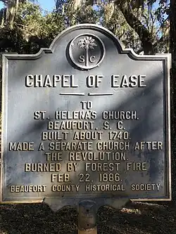 - ^ "St. Helena Parish Chapel of Ease Ruins, Beaufort County (S.C. Sec. Rd. 45, St. Helena Island)". National Register Properties in South Carolina. South Carolina Department of Archives and History. Retrieved June 9, 2012.