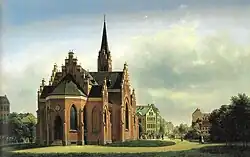 In 1861 construction of St. John's Church began on land provided by the city on the old Blegdam Common. The architect was Theodor Sørensen (architect) who had recently graduated from the Royal Danish Academy of Fine Arts.[1]
