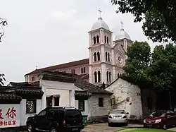 The church was originally built by French missionary Andre Rene Guillot (1820–1887) in 1871.[2] An extension of the entire church complex was carried out in 1903 by Italian missionary Jaoques Chianello (1865–1927), and was completed in 1907.[2] Soon after, Benevolence Hall, Nursing Home, Nursery, Peide Primary School, Convenient Cloth Factory and Convenient Match Factory was successively added to the church.[2]