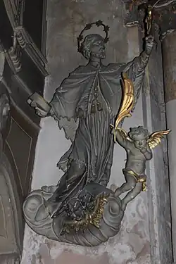 Archeological research from the 1990s identified the remnants of an 11th-century rotunda at the place of the current church building.[2] It was partially destroyed in 1270s then rebuilt divided into two floors, the lower underground floor serving as an ossuary. The surroundings of the church contained a graveyard that was active until the end of the 18th century. Probably in the half of 14th century the one-nave church of St. Nicholas was constructed in the original gothic footprints, the direct predecessor of the current church building. The church was torn down in 1526 together with many other sacral buildings outside of the Bratislava city walls in preparation of a Turkish siege.