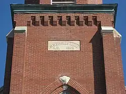 Dedicated to third-century martyr Saint Sebastian, the parish was established in 1852 from territory that had been part of St. Rose and St. John the Baptist parishes. By the end of the following year, its members constructed a church building that would serve the parish for twenty-five years;[2] a frame structure, it was built under the direction of an African American man named Coratus.[3] This structure served the parish until a replacement brick church was completed in October 1879; a rectangle measuring 45 feet (14 m) by 85 feet (26 m), it cost $4,000 to build and was considered by some to be the finest church in Mercer County.[2] Anton DeCurtins was instrumental in this building's history: he designed it, added its pipe organ, and expanded it in 1894.[3]