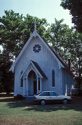 St. Stephen's Church, also known as St. Stephen's Episcopal Church, is an historic church located at 6807 Northumberland Highway, Heathsville, Northumberland County, in the Northern Neck of Virginia. Built in 1874 and consecrated in 1881, it was designed in the Carpenter Gothic style by T. Buckler Ghequiere.[3] On December 28, 1979, it was added to the National Register of Historic Places. It remains in use by an active parish in the Episcopal Diocese of Virginia.[4] It is located in the Heathsville Historic District.
