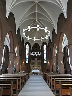 The church is built to a Neo-Gothic design in handmade red brick. The style was inspiration by the city's original Catholic churches dating from before the Reformation.