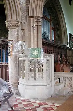 The early 16th-century screen to the Lady Chapel was brought here from the old chapel of St John's College, Cambridge during the 1867 – 1870 restoration by George Gilbert Scott[3] who had recently built the new college chapel.[1][4]