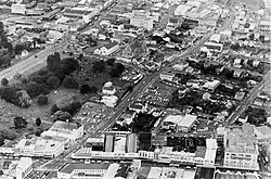 Aerial view of Newton and Symonds St Cemetery. Near the centre St Benedict's Church and St Benedict's School can be seen.