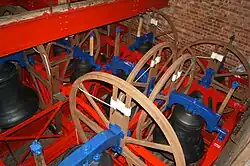 The bells were rededicated and rung for the first time at a service held in the ruins of the church on 20 June 1948. A report in The Ringing World describes the new bells as being of "splendid tone".[29] The church's bells have remained essentially as installed in 1948, but received major maintenance by the local ringers in summer 2014. Taking 38 days to complete, the work included the stripping down of the fittings, removing them of rust and repainting them, acoustic work in the tower, and the installation of an electronically operated sound control floor, so that the volume of the bells outside the church can be lowered for recreational ringing.[30] The bells are well-regarded for their rich sound, seeing visitors from across the country.[31] Other rings of bells were cast by John Taylor & Co to the same dimensions as St Mary's a few years later, including at Mount St Alphonsus in Limerick in 1947, and St Peter's Church in Evercreech in 1948.[32]