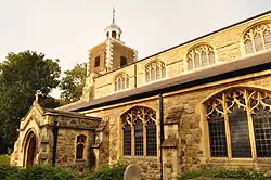 The earliest surviving tomb in the churchyard is that of the astrologer John Partridge, who died in 1715. There are memorials to other famous people including a British Prime Minister, Henry Addington, 1st Viscount Sidmouth (1757–1844)[7][8][9] and three Lord Mayors of London.[10] A memorial to John Dee (1527–1609), who lived opposite the church and is buried in an unmarked spot beneath the chancel,[5] was unveiled in June 2013.