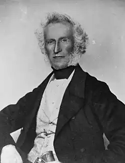 A building committee decided on building a new church and in May 1866, it appointed Thomas Brunner as the architect.[5] The foundation stone for the new church was laid on 24 November 1866, and the ceremony was attended by many prominent people: Colonel Mathew Richmond, Sir David Monro, Arthur Seymour, Brunner as the architect, Edward Baigent, with the service conducted by Bishop Selwyn. The foundation stone was laid by Mrs Blundell.[6] The committee decided on Christmas Day of 1866 that a memorial tablet to Captain Francis H. Blundell was necessary, as he had been one of the driving forces behind the new church building.[5] It was probably New Zealand's first memorial church. Blundell was an immediate neighbour to the church and had died in 1865; he is buried in the church's graveyard on land that he gifted.[1][5] The first service was held in the new church in July 1867.[7] The new Bishop of Nelson, Andrew Suter, was due to arrive later in the year, and hence the church was not consecrated until 13 November 1867.[5][7]