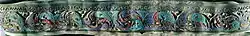 The Staffordshire Moorlands Pan, although lacking its handle and base, is an extremely well preserved enamelled and inscribed bronze (strictly speaking, "copper alloy") vessel for cooking and serving food, decorated in a Celtic style. The Celtic peoples of the Roman period made more use of enamel on metal than other parts of the Empire.[1]