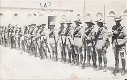 The Yeomanry was not intended to serve overseas, but due to the string of defeats during Black Week in December 1899, the British government realised that it was going to need more troops than just the regular army. A Royal Warrant was issued on 24 December 1899 to allow volunteer forces to serve in South Africa. The Royal Warrant asked standing Yeomanry regiments to provide service companies of approximately 115 men each for the Imperial Yeomanry. The new force was equipped to operate as Mounted infantry (MI), armed with a Lee–Metford infantry rifle and bayonet instead of a cavalry carbine and sabre.[3][40][41][42][43][44]