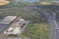 In the early 1980s, the southern part of the line was severed by the construction of the M25 motorway. Junction 14 was built on the site of Poyle Halt and part of the trackbed to the south was covered by the new road.[20] The final train to reach Staines, a freight working to the oil terminal, ran on 16 January 1981.[3] The line north of Colnbrook was retained to serve the factories and depots in the area.[3]