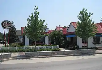 The Lincoln Highway was the first paved road in Plainfield. As the first transcontinental road in America, the road saw very heavy usage and was re-designated U.S. Route 30 in the 1920s. From 1940 to 1957, U.S. Route 66 ran concurrently with US 30 on the same section of Lincoln Highway through Plainfield,[1] creating substantial traffic. Plainfield's location on the routes made it a prime location for refuelling stations.[2]