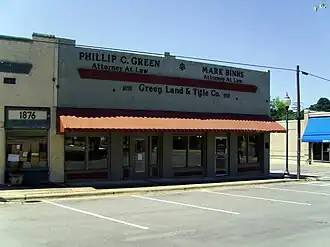 The Star City Commercial Historic District encompasses the historic commercial center of Star City, Arkansas, the county seat of Lincoln County. The district consists of thirteen buildings on two city blocks, as well as the Star City Confederate Memorial. The buildings are located on Jefferson Street, between Arkansas and Bradley Streets, and on Bradley Street between Jefferson and Drew Streets. The memorial is located in the town square, near the junction of Jefferson and Bradley. The buildings in the district were built between 1916 and 1928, and have for the most part escaped major alterations since their construction. Minor changes generally involve changes to store fronts, such as the boarding over of transom windows, the replacement of recessed entries with flush ones, and changes to the fenestration. The building at 108 Jefferson, built in 1927 to house a bar, has been extensively remodeled and does not contribute to the district's significance; the Star Theater building at 212-214 Bradley has also been extensively altered.[2]