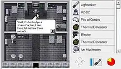 Yoda Stories is a short, procedurally generated point-and-click adventure game designed for players to finish in an hour.[4][5] The game has no central plot or ultimate goal. Each time a new game is started, the player is tasked to complete a random mission. This may include rescuing another Star Wars character, obtaining an object, warning the Rebels of an attack, or destroying an Imperial facility.