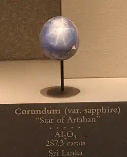 The Star of Artaban is a 287–carat cabochon-cut star sapphire currently located at the Smithsonian National Museum of Natural History. Its origin is somewhat obscure but it is believed to come from Sri Lanka. Unlike some other sapphires, it is not transparent and is of a milky blue colour. It was donated by an anonymous member of the Georgia Mineral Society in the 1941–1943 time period.[1]
