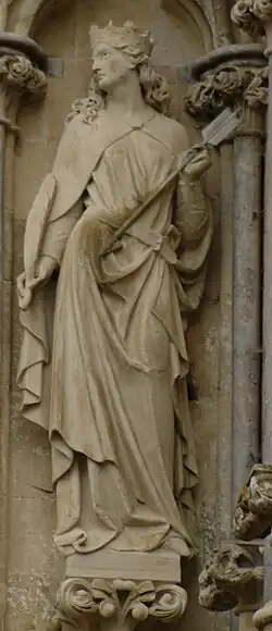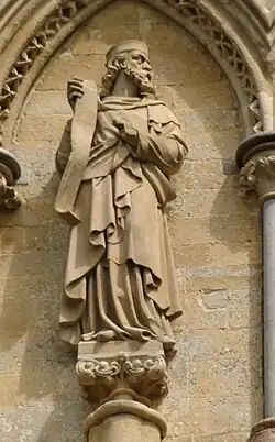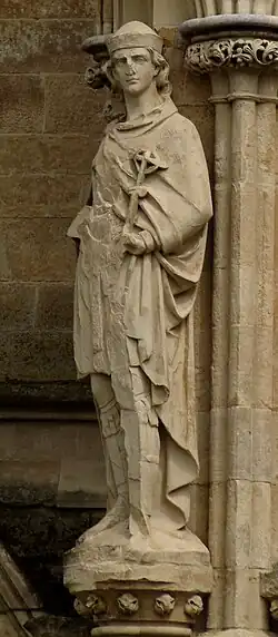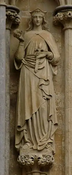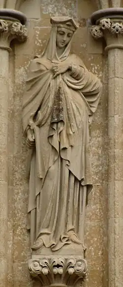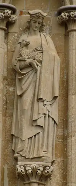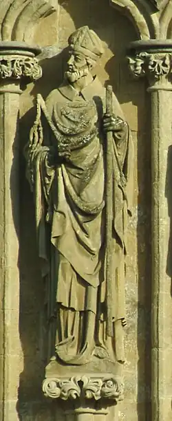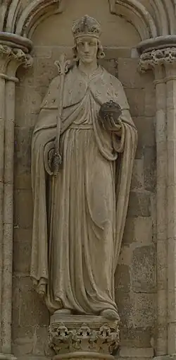 167 St Etheldreda After 1869 James Redfern On north face. Holding model church on right arm, staff in left hand.