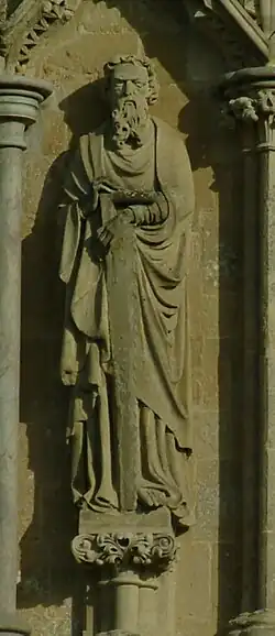 1. ^ Ayers. T., 2000 (Salisbury Cathedral: The West Front:A History and Study in Conservation.) pages 191–247. Philimore, ISBN 1860771521-1-86077-152-1.