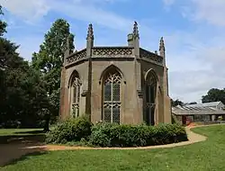 The temple was a memorial commissioned by George Staunton in 1824 with a large memorial urn at its centre.[22] As initially completed the temple contained dedications to Staunton's parents and further dedications to more distant relations and friends.[22] In the following years an eight busts were added in a semi circle around the urn.[23] Most of the busts were of friends of Staunton who had died after 1820 but one was of the then still living William Howley.[23] In 1840 Staunton decided to add no further memorials to the temple.[24] Further busts were added after this time but they were primarily of people still living.[25] The temple was removed when William Henry Stone had his new home constructed on its site.[26]