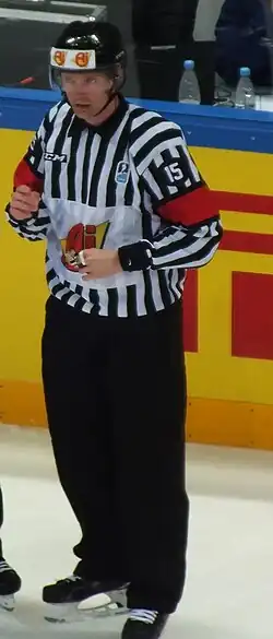 Stefan Fonselius (born September 19, 1976) is a Finnish ice hockey linesman who works in the SM-liiga. He has also officiated in the ice hockey at the 2010 Winter Olympics.[1] He gained notoriety when he unwittingly took the Gold Medal-winning puck home with him to Turku, Finland before delivering it to the IIHF to be authenticated and sent to the Hockey Hall of Fame.[2]