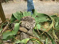 A wide variety of succulent and xerophytic plants from especially southern Africa and Madagascar can be found in the two arid houses and throughout the garden. Some interesting succulents and xerophytes on display include Welwitschia mirabilis, Aloidendron dichotomum (quiver tree), Xerosicyos danguyi (silver dollar vine), Dioscorea elephantipes (elephant's foot) and Pachypodium namaquanum (halfmens). Rare vygies such as Herreanthus meyeri (named after Hans Herre), Meyerophytum meyeri and Fenestraria aurantiaca are also on display.