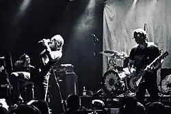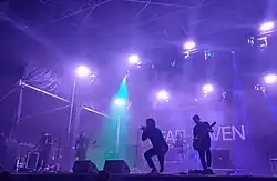 Deafheaven's musical style has been described as black metal,[69][70] blackgaze,[71][72] post-metal,[73][74] screamo,[75][76] shoegaze,[77][78] post-black metal,[79] and art metal.[80] Deafheaven's musical style has been described by Rolling Stone as a "boundary-pushing blend of black metal, shoegaze and post-rock".[81] McCoy has cited various other influences on the band's sound, including alternative rock and early thrash metal, and said they do not consider themselves a black metal band, because, although influenced by the genre, they do not have "the ethos, the aesthetic or really the sound of one".[82] In a 2017 interview with Red Bull Music Academy Daily, McCoy stated: "The whole shoegaze/black metal, or post-black metal thing, was being done ten years before we were a band."[83] George Clarke cited Burzum, ColdWorld, Leviathan, Iron Maiden, Metallica, Slayer, Morbid Angel, Pantera, Weakling, Yaphet Kotto, Funeral Diner, and Thursday as influences.[84][85]