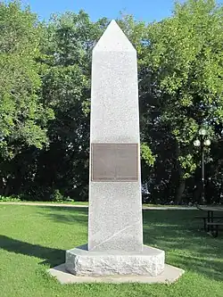 Monument to the Greater Winnipeg Water District Aqueduct, a portion of which runs underneath the river and park near 49°53′54.37″N 97°07′57.72″W / 49.8984361°N 97.1327000°W / 49.8984361; -97.1327000