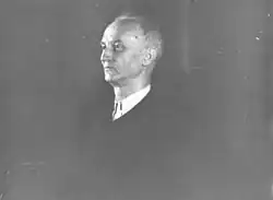 Moljević was arrested by the Yugoslav Partisan forces on 23 September 1945[22] and tried alongside Mihailović and twenty-two others in the summer of 1946 on grounds of collaborationism and organized insurrection.[23] He was found guilty of collaboration with the Axis powers and sentenced to a twenty-year imprisonment. The communists stripped him of all his political and civic rights and all of his property and belongings were confiscated.[22] Moljević was sent to the northern Serbian town of Sremska Mitrovica and was imprisoned there. His health began to deteriorate in 1956 and the following year he was diagnosed with colon cancer. He underwent an unsuccessful operation in Belgrade before being sent back to Sremska Mitrovica Prison, where he died on 15 November 1959.[24] He was buried at Novo groblje cemetery in Belgrade.[2]