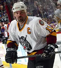 He is best known, however, for his long tenure with the top-level minor league Chicago Wolves. He joined the Wolves in 1994 when they were in the International Hockey League, and followed them into the American Hockey League. He retired in 2005, having played in all 11 of the team's seasons up to that point. He is still the Wolves all-time leading scorer. His 596 minor league goals is the eighth highest total in minor league history, and his 605 total goals (minor league and NHL) is good for 22nd all time.
