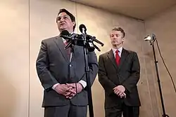 Munisteri at a press conference with Senator Rand Paul in Dallas, Texas.