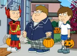 Although normally even-tempered and relatively tolerant, Steve cries when he is notably upset, but he has also had uncontrolled bursts of rage, during which he breaks nearby objects and screams very loudly.[27] If pressed hard enough, Steve will also hit or attack people, such as when he beat up Beauregard La Fontaine for insulting his father, even though he is generally not aggressive or an adept fighter, as he was unable to even make a fist in "Bully for Steve", for example.[13] He also uses childhood paraphernalia that teenagers have typically outgrown, such as the teddy bear he is implied to sleep with in "Live and Let Fry", and the Care Bears towel he is revealed to use in "Camp Refoogee". In the episode Stan & Francine & Connie & Ted, he twice demonstrates an extreme form of rage which is referred to as 'going bananas', where his face turns bright red, he screams gibberish, flails around, breaks things, and even attacks anyone nearby. His neighbours and friends are well aware of this, as at the end of the first tantrum Greg is seen across the street calmly listening and commenting on it while Barry warns him not to go bananas before he does the second time.