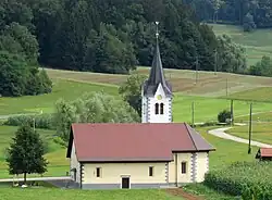 The local church is dedicated to Saint Stephen (Slovene: sveti Štefan) and belongs to the Parish of Krka. It dates to the late 15th century. It is a single-nave church with a stone entryway. The octagonal chancel has three bays and a vault in the Gothic style, and a bell tower stands on the north side of the church. The church's furnishings date from the 19th century.[7]