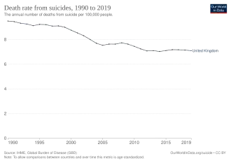 2. ^ Kirk-Wade, Esme (8 January 2025). "Suicide statistics". UK Parliament. House of Commons Library. Retrieved 29 January 2025.