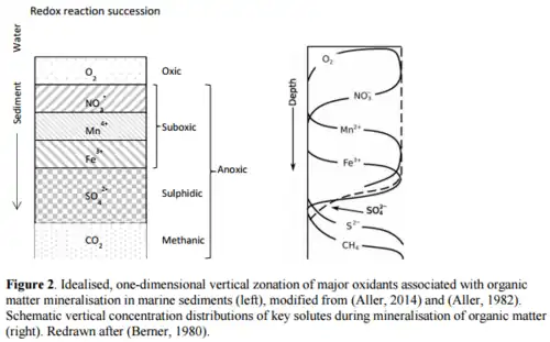 15. ^ Jørgensen BB (1982). "Mineralization of organic matter in the sea bed—the role of sulphate reduction". Nature. 296 (5858): 643–645. Bibcode:1982Natur.296..643J. doi:10.1038/296643a0. ISSN 0028-0836. S2CID 4308770.