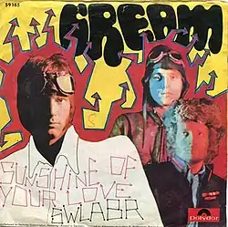 "Sunshine of Your Love" (Single label). The Cream [sic]. Atco Records. 1968. OCLC 642983575. 45-6544.