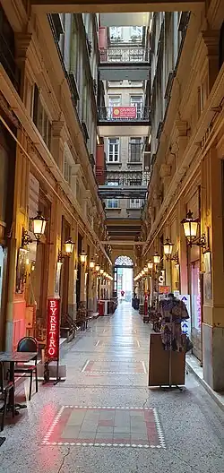 Suriye Pasajı (Syria Arcade in Turkish), or Cité de Syrie in French, is a historical six-storey[1] shopping arcade located in İstanbul, Turkey, in the Asmalımescit subdistrict of Beyoğlu. The arcade is situated on İstiklal Avenue 166 (formerly 348).[2] The ground floor of the arcade hosts a wide array of businesses, meanwhile upper floors are being mostly used for residential accommodation.[1] It was built in 1908.