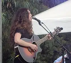 O' Neill fuses traditional Irish folk with rock, soul, gospel and blues. She has a large range of vocals combined with her guitar technique, her loop pedals and trumpet.[18]