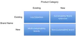 • Sustainability brand extension occurs when a company introduces products of a different product category but under the same sustainability brand name.