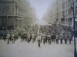 The Swedish Brigade (Swedish: Svenska brigaden, Finnish: Ruotsalainen prikaati) was a paramilitary unit composed of 1,000 Swedish volunteers to assist the White Guards during the 1918 Finnish Civil War.[1] The brigade participated in the Battle of Tampere between 28 March and 6 April.[2][3] 34 members of the Swedish Brigade were killed in action and up to 50 wounded in the battle. Notable members included the archaeologist Axel Boëthius and the historian Olof Palme, the uncle and the namesake of the future prime minister.[4][3]