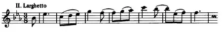 There is no pause between the 2nd and 3rd movements, as the ending of the previous movement ends on the key of D major instead of E major, creating a transition to the next movement.