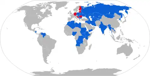 The T-72 is a family of Soviet main battle tanks that entered production in 1973.[8] The T-72 was a development based on the T-64 using thought and design of the previous Object 167M.[9][10] About 25,000 T-72 tanks have been built, and refurbishment has enabled many to remain in service for decades.[11][12] It has been widely exported and has seen service in 40 countries and in numerous conflicts. The Russian T-90 introduced in 1992 and the Chinese Type 99 are further developments of the T-72.[13][14] Production and development of various modernized T-72 models continues today.