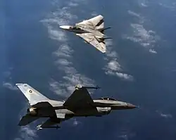 Top Gun initially operated the Douglas A-4 Skyhawk and borrowed USAF Northrop T-38 Talons to simulate the flying characteristics of the MiG-17 and MiG-21, respectively. The school also used Marine-crewed Grumman A-6 Intruders and USAF Convair F-106 Delta Dart aircraft when available. Later adversary aircraft included the IAI Kfir and General Dynamics F-16 Fighting Falcon; and the T-38 was replaced by the Northrop F-5E and F-5F Tiger II.[24]