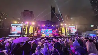 Decorations are put up starting in early December. During the celebration on December 31, music artists from around the world put on live performances throughout the day.[3]