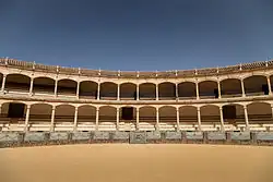 Madonna arrived in Ronda in November 1994 with a team of 60 people and wanted to shoot at the bullrings in the city. However, her request was rejected by the Real Maestranza de Caballería of Ronda (Royal Cavalry Brotherhood of Ronda), who considered it as a desecration of the arenas if Madonna would have filmed there, since her name at that time was associated with provocative imagery. Also, Madonna had to give up shooting around the city's square due to high economic demands of its owner, former bullfighter Antonio Ordóñez who demanded ₧17 million (US$122,302 in 1994). Later it was clarified that Madonna was refused due to unknown moral reasons from the Brotherhood, who accused the media of making free publicity on the singer's behalf. The refusal generated controversy in Ronda, whose political groups believed that allowing the video to be shot within its precipices would be great promotion for the city. Madonna later obtained permit to shoot inside the palace of the Marquis of Salvatierra. Bullfighting scenes were shot at the Plaza de Toros de Ronda (The Toros Plaza of Ronda), where Muñoz acted alongside three fighting bulls. The actor was paid ₧7 million (US$50,360 in 1994) for participating in the video.[62]